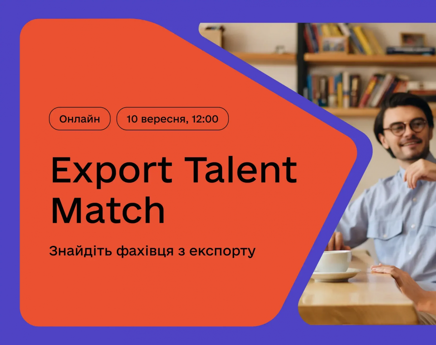 10 вересня відбудеться Export Talent Match — онлайн-ярмарок вакансій, що проходитиме у форматі speed networking. Під час заходу зможете: