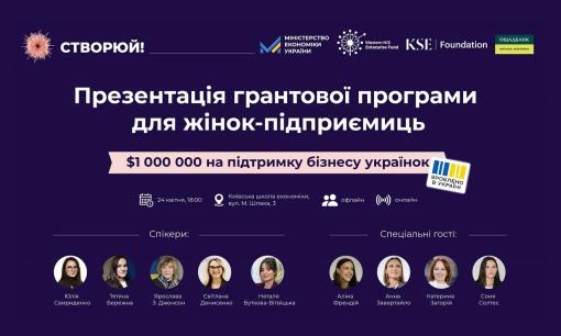 «СТВОРЮЙ!»: МІНЕКОНОМІКИ, WNISEF І KSE FOUNDATION ПРЕЗЕНТУВАЛИ ГРАНТОВУ ПРОГРАМУ НА $1 МІЛЬЙОН ДЛЯ ЖІНОК-ПІДПРИЄМИЦЬ
