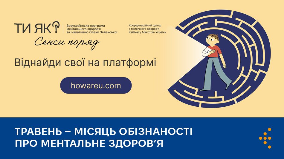 Місяць обізнаності про ментальне здоровʼя започаткований у США 1949 року. Цьогоріч в Україні він проходить під закликом віднайти свої сенси — у часи випробувань вони працюють як внутрішні опори: «Ти як? Сенси поряд. Віднайди свої на платформі howareu.com ».