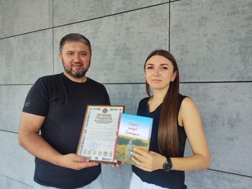 Почесну грамоту Сіверськодонецької районної державної адміністрації та подарунок – книгу «Нариси історії Луганщини» авторів Курило В.С., Воронін В.М., Набока О. В., Дробишева О.А. вручив Радіоновій Юлії.