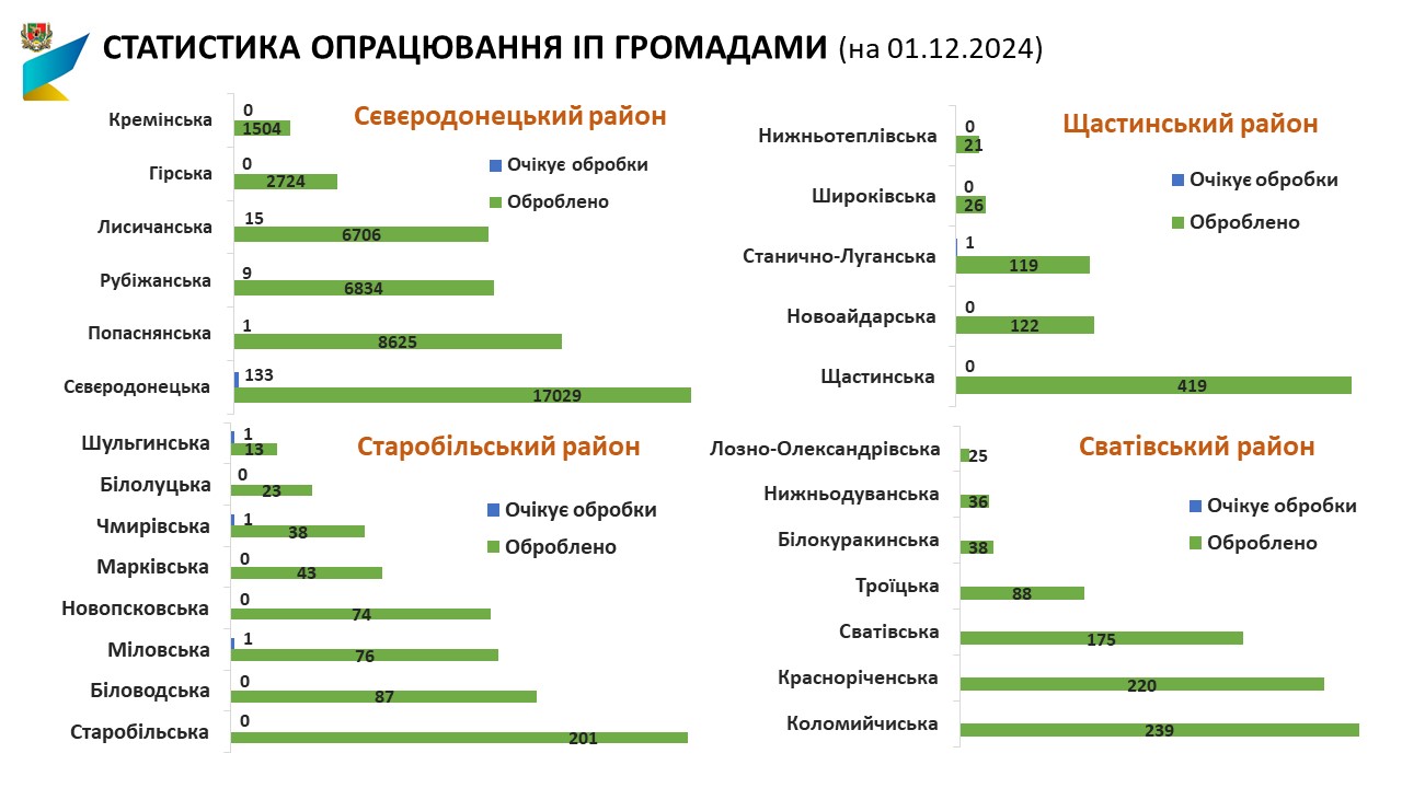 В Сіверськодонецькій міській територіальній громаді опрацьовано 16994 ІП. До РПЗМ внесено 13498 приміщень та 1762 будівлі.