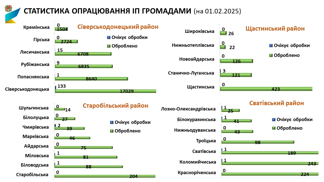 В Сіверськодонецькій міській територіальній громаді опрацьовано 17029 ІП. До РПЗМ внесено 13515 приміщень та 1776 будівель.