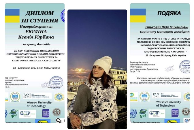 Учениця сєвєродонецької Гімназії № 4 Ксенія Рюміна стала дипломантом ХХV ювілейної міжнародної науково-практичної конференції «Відновлювана енергетика та енергоефективність у ХХІ столітті»