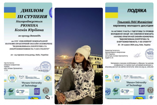 Ксенія Рюміна, учениця 9-Б класу Гімназії № 4 міста Сєвєродонецька, отримала диплом ІІІ ступеню за кращу доповідь з роботою «Використання сонячної енергії».
