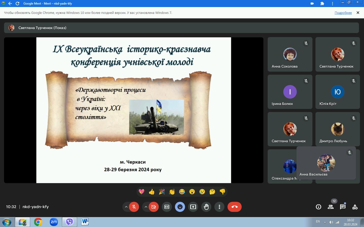 28 березня 2024 року відбулося урочисте відкриття та пленарне засідання онлайн-конференції. На ньому Луганську обласну малу академію наук учнівської молоді у секції «Історико-краєзнавчі та природні туристсько-рекреаційні об’єкти України, пов’язані з подіями державотворення та історичними постатями» представила Лєбєдь Діана, вихованка секції «Історія України», учениця 9 класу Гімназії № 15 м. Сєвєродонецька Луганської області з темою доповіді «С. Локтюшев та становлення археологічної науки на Луганщині». Науковий керівник Олександр Набока, керівник секції «Історія України» комунального закладу «Луганська обласна мала академія наук учнівської молоді», доктор історичних наук, професор, завідувач кафедри історії та археології ДЗ «Луганський національний університет імені Тараса Шевченка.
