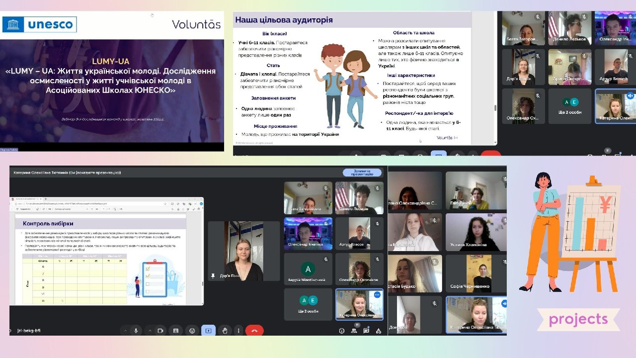 З 15 жовтня по 23 листопада учні 8-11 класів сіверськодонецького Ліцею «КОЛЕГІУМ» беруть участь у ІІ етапі UNESCO Ukraine Project “LUMY-UA”: Життя української молоді - розуміння сенсів у мережі Асоційованих Шкіл ЮНЕСКО. Учнівська команда та лідери учнівського самоврядування Дар’я Ліннік та Анастасія Будько провели серію вебінарів для своїх одноліток, самостійно провели анкетування молоді та глибинні інтерв’ю.