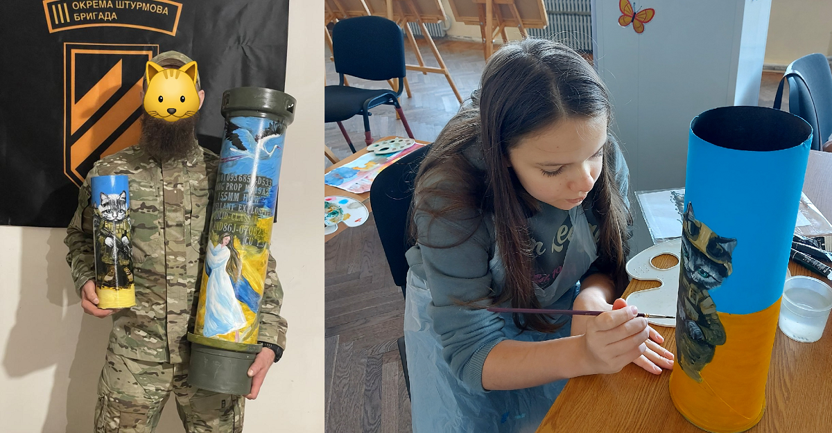 Учні сіверськодонецької художньої школи привітали військових зі святами власноруч розмальованими тубусом та гільзою