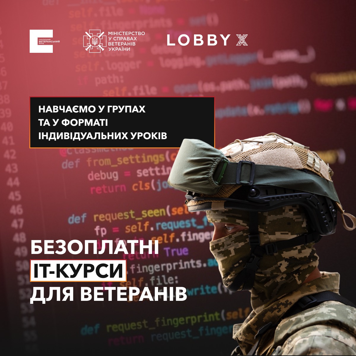 Український ветеранський фонд разом з партнерами Lobby X запрошує ветеранів і ветеранок опанувати професію ІТ-фахівців на безоплатних курсах.