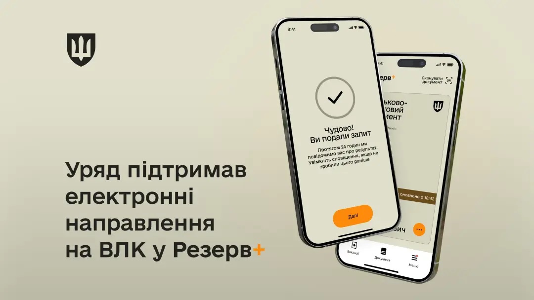 Незабаром військовозобов'язані та резервісти зможуть самостійно подавати запит та отримувати електронні направлення на військово-лікарську комісію (ВЛК) у мобільному застосунку Резерв+. Уряд вніс відповідні зміни до порядку проведення призову громадян на військову службу під час мобілізації.