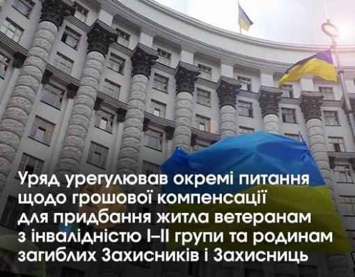 Уряд урегулював окремі питання виплати грошової компенсації за житло деяким категоріям ветеранів та їхніх родин