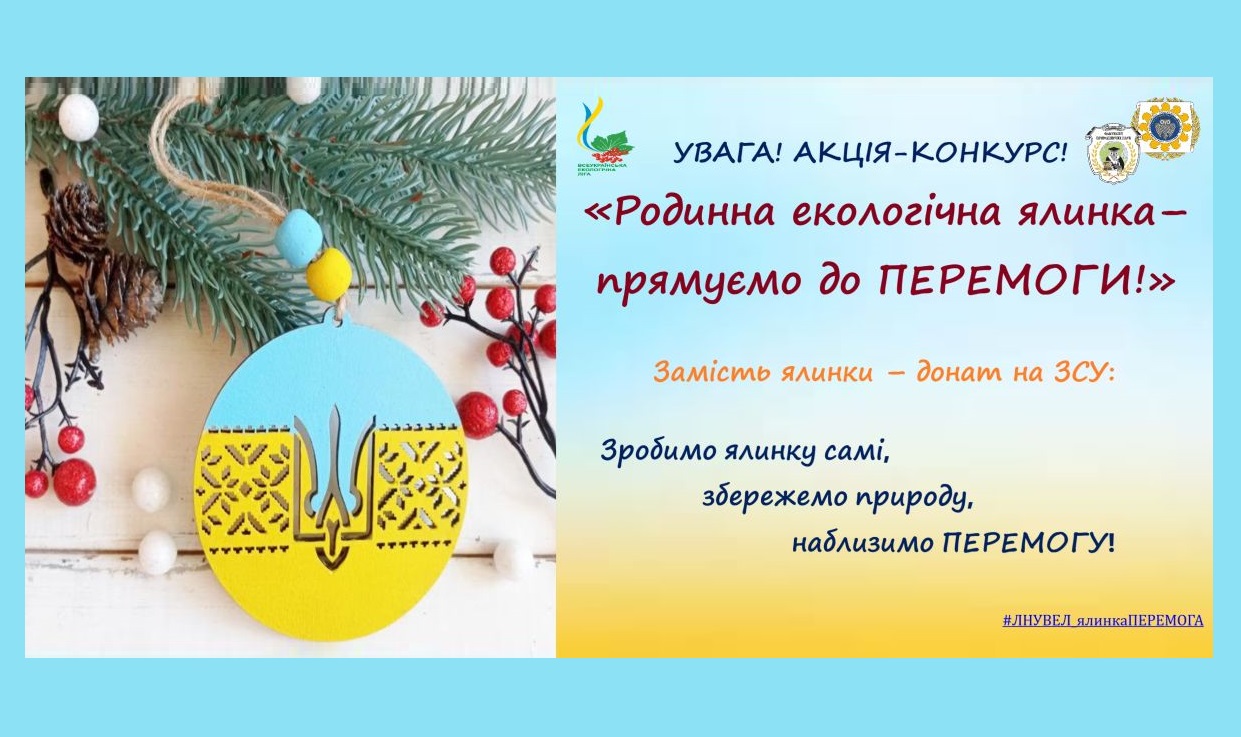 Вже багато років поспіль, за традицією нашого факультету спільно з Всеукраїнською екологічною лігою, перед Новим роком ми проводили конкурс «Екологічна ялинка». У цьому році ми змінюємо назву на «Родинна екологічна ялинка – прямуємо до ПЕРЕМОГИ!».