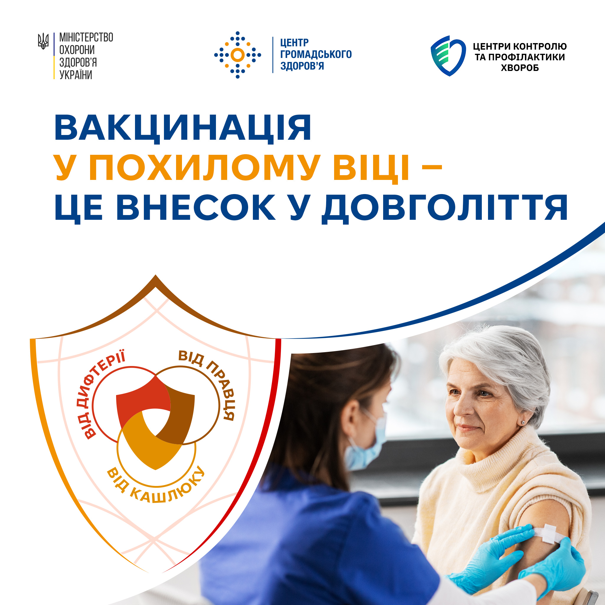 Важливо пам'ятати, що захворіти на смертельно-небезпечні інфекційні захворювання можна у будь-якому віці. Люди старшої вікової категорії мають проходити ревакцинацію проти дифтерії та правця раз на десять років з моменту останнього щеплення проти цих хвороб (або негайно після отримання травми, внаслідок якої є ризик захворіти на правець, якщо з моменту останнього щеплення минуло п’ять років).
