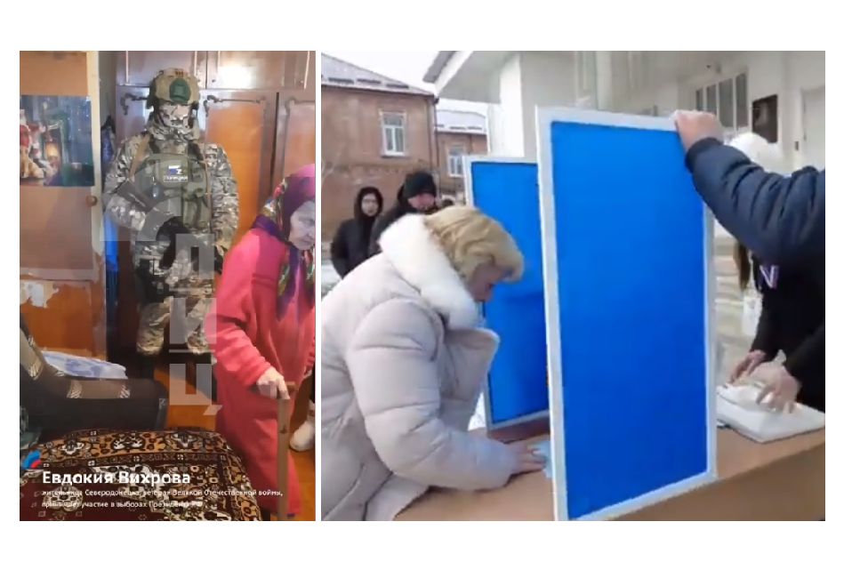 Так, на рашистських пропагандистських відео з міста можна побачити, що члени виїзних “виборчкомів” знаходяться у помешканях маломобільних сєвєродончан разом з озброєними особами у військовій формі.