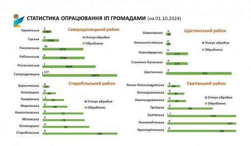 Станом на 01.10.2024 в Луганській області подано 47547 інформаційних повідомлень (ІП) (+360 ІП в порівнянні з 01.09.2024) про пошкоджене/знищене нерухоме майно.
