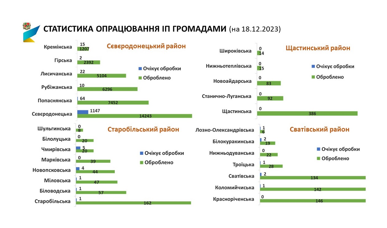 В Сєвєродонецькій міській територіальній громаді реєстраторами структурних підрозділів Сєвєродонецької міської військової адміністрації опрацьовано 14 243 ІП, в процесі обробки - 1147.