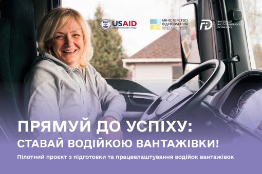 Пілотний проект з підготовки та працевлаштування водійок вантажівок реалізується ГО «Фундація інституційного розвитку» за ініціативи Міністерства розвитку громад, територій та інфраструктури України та за підтримки Програми USAID «Конкурентоспроможна економіка України».