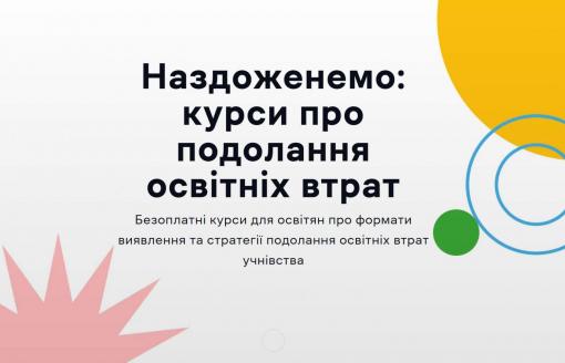 Безоплатний онлайн-курс «Наздоженемо: курси про подолання освітніх втрат» для вчителів та освітніх управлінців: https://bit.ly/3HRLmpX