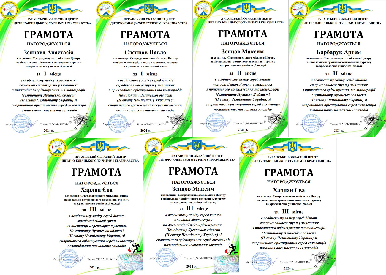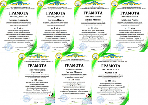 Вихованці Сєвєродонецького Центру туризму, краєзнавства та екскурсій учнівської молоді Анастасія Зєнцова, Павло Слєпцов, Максим Зенцов, Артем Барбарук, Єва Харлан показали високий рівень знань зі спортивного орієнтування в кожному етапі та посіли призові місця. Наші учасники у своїх вікових групах змогли посісти всі сходинки п'єдесталу.