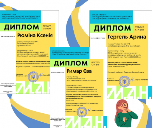 Вітаємо призерів І (міського) етапу конкурсу-захисту науково-дослідницьких робіт учнів-членів Луганської обласної малої академії наук учнівської молоді у 2023-2024 н.р.