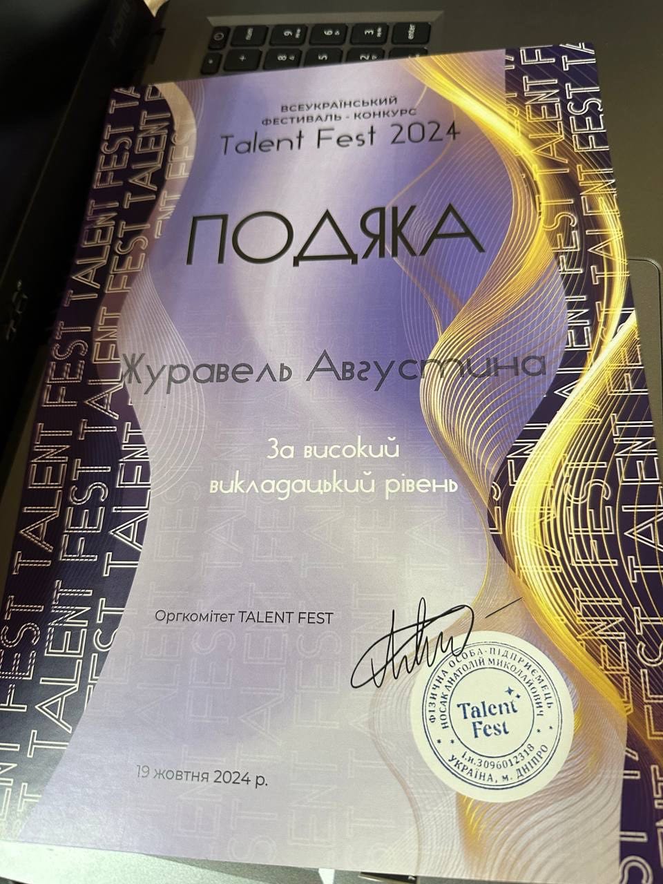 Керівниця гуртка - Августина Журавель продемонструвала педагогічний талант, завдяки якому гурт "Лісова пісня" став справжньою перлиною Всеукраїнського фестивалю-конкурсу "Talant Fest 2024"!