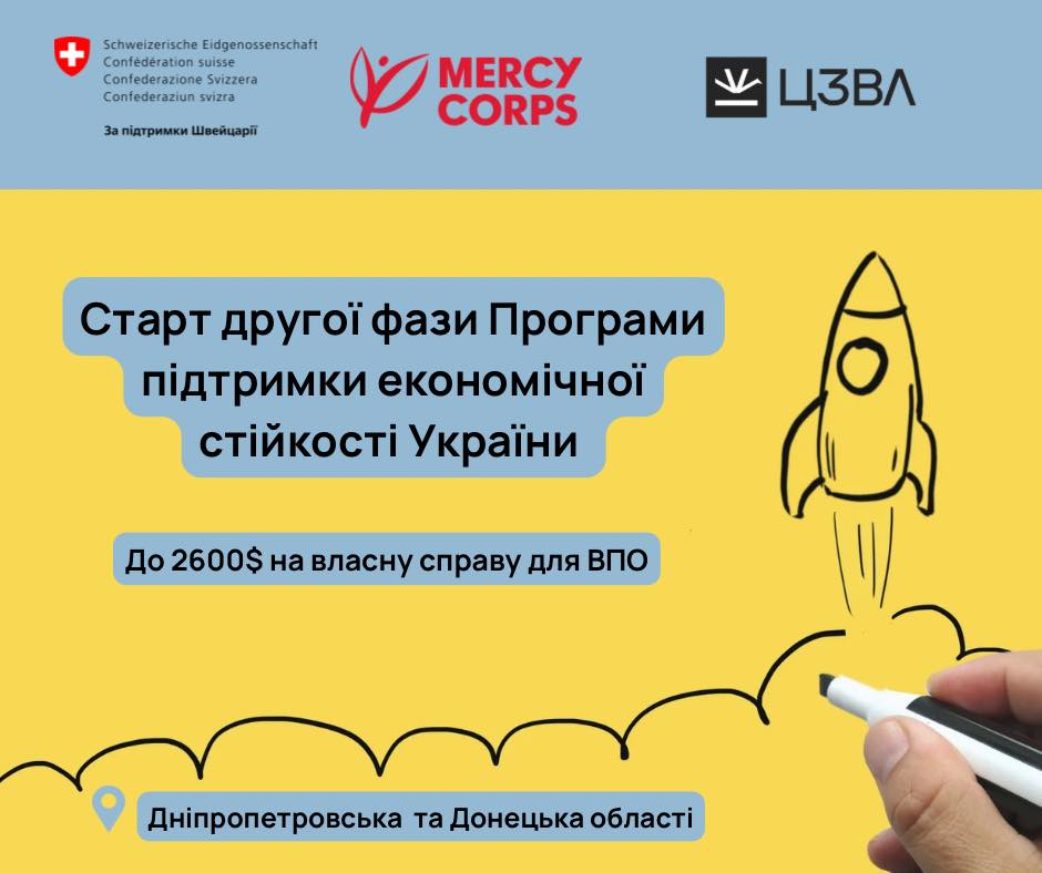Проєкт реалізується у партнерстві з @Mercy Corps Ukraine за фінансової підтримки Embassy of Switzerland in Ukraine / Посольство Швейцарії в Україні, що надається через Швейцарську агенцію розвитку та співробітництва.