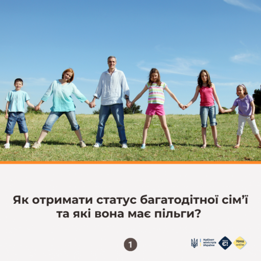 Багатодітні сім’ї в Україні мають низку пільг і підтримку від держави.