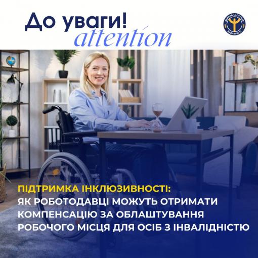 Роботодавці, які облаштували робоче місце для особи з інвалідністю, можуть подати заяву на отримання компенсації через портал Дія http://surl.li/soacfe