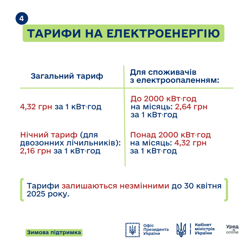 Які фіксовані тарифи для побутових споживачів – дивіться в інфографіці. Детальніше про Зимову підтримку – на сайті e-aid.diia.gov.ua