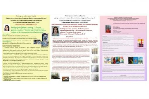 - Мовознавство (секція: французька мова). Роботу «Англо-американські запозичення в сучасній французькій мові» підготувала Гергель Арина, учениця 9 класу Гімназії № 6 міста Сєвєродонецька Луганської області, науковий керівник - Подоляка Вікторія Іллівна, вчитель французької мови Гімназії № 6 міста Сєвєродонецька Луганської області.