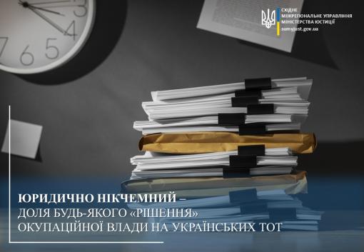 ЮРИДИЧНО НІКЧЕМНИЙ – ДОЛЯ БУДЬ-ЯКОГО «РІШЕННЯ» ОКУПАЦІЙНОЇ ВЛАДИ НА УКРАЇНСЬКИХ ТОТ