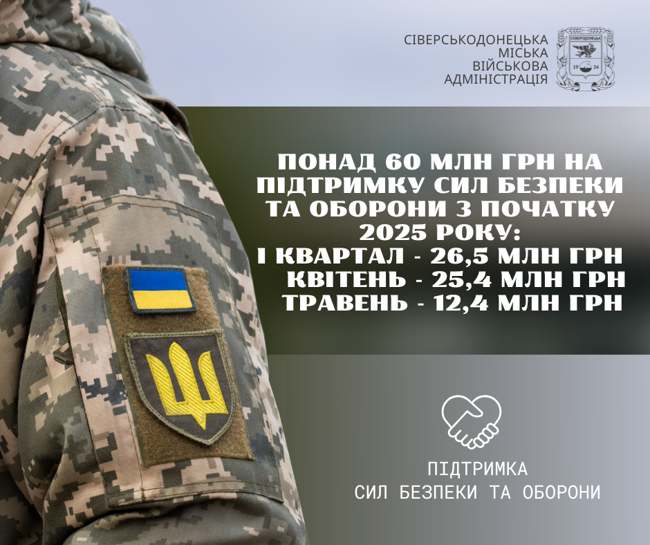 З початку року Сіверськодонецька громада спрямувала понад 60 мільйонів гривень у вигляді субвенцій з бюджету громади на підтримку сил безпеки та оборони.