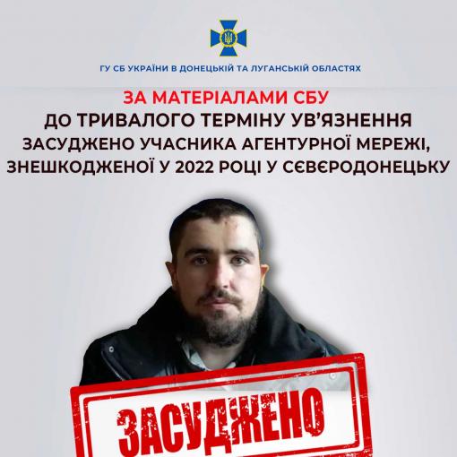 За матеріалами СБУ тривалий термін ув’язнення отримав учасник агентурної мережі, знешкодженої у 2022 році у Сєвєродонецьку