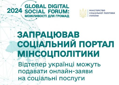 Сьогодні, 27 вересня, Міністерка соціальної політики України Оксана Жолнович анонсувала запуск Соціального веб-порталу електронних послуг Мінсоцполітики – soc.gov.ua. В особистому кабінеті вже можна подавати онлайн-заяву на отримання соціальних послуг. Ці та інші можливості презентували в межах диджитал-форуму «GLOBAL DIGITAL SOCIAL FORUM 2024: можливості для громад».