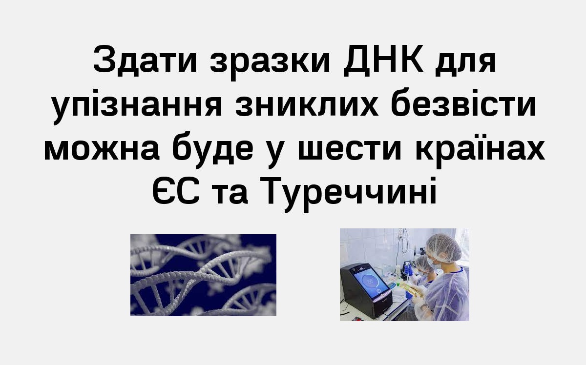 За інформацією: Міністерство внутрішніх справ України - https://mvs.gov.ua/uk/news/zdati-zrazki-dnk-dlia-upiznannia-zniklix-bezv...