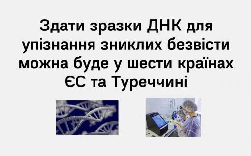 Здати зразки ДНК для упізнання зниклих безвісти родичів внаслідок російської агресії можна буде у шести країнах ЄС та Туреччині