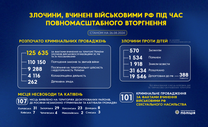 Злочини, вчинені військовими рф під час повномасштабного вторгнення в Україну (станом на 26.08.2024)