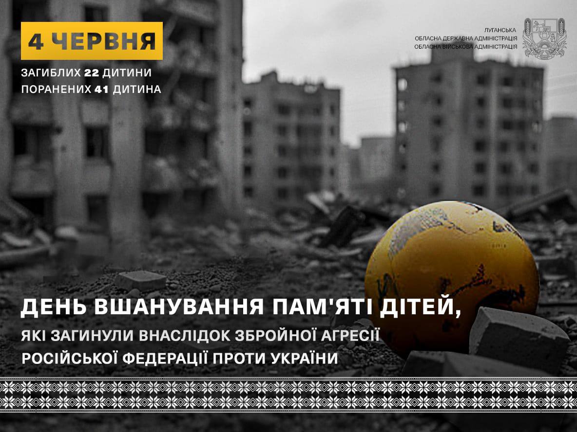 Сьогодні відомо про 22 наших маленьких луганчан - світлих безневинних янголів, життя яких обірвали російські снаряди. 41 дитина отримала поранення. Але ми навіть не знаємо, скількох наших дітей, які залишилися в окупації, продовжує вбивати росія.