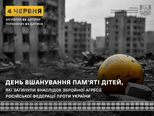 Звернення голови Луганської обласної державної адміністрації – начальника обласної військової адміністрації Артема Лисогора до Дня вшанування пам'яті дітей які загинули внаслідок збройної агресії російської федерації проти України