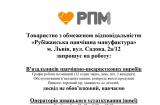 Інформуємо про актуальні вакансії Товариства з обмеженою відповідальністю «Рубіжанська панчішна мануфактура»