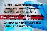 В КНП «Сєвєродонецький центр первинної медико-санітарної допомоги» можна зробити вакцинацію від правця та дифтерії у містах Д...