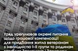 Уряд урегулював окремі питання виплати грошової компенсації за житло деяким категоріям ветеранів та їхніх родин