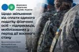 Щодо звільнення від сплати єдиного податку фізичних осіб – підприємців, мобілізованих у період дії воєнного стану
