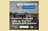 2 квітня стартує процес подання заяв про відшкодування збитків, втрат або шкоди, завданих російською агресією проти України