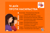 Щорічно в Україні з 25 листопада до 10 грудня включно проводиться Всеукраїнська акція «16 днів проти насильства»