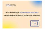 МОН рекомендує 22-24 лютого 2023 року організувати освітній процес у дистанційному форматі
