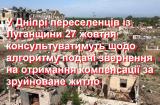 У Дніпрі переселенців із Луганщини 27 жовтня консультуватимуть щодо алгоритму подачі звернення на отримання компенсації за зру...