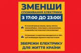 Міненерго: З 17:00 до 23:00 закликаємо всіх громадян максимально знизити електроспоживання!