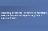 Мешканцям восьми областей, території яких прилеглі до зони проведення воєнних (бойових) дій, безкоштовно надаватимуть дрова уп...