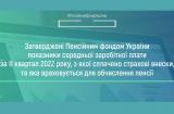 ПФУ: Розмір середньої зарплати в Україні, з якої сплачено страхові внески та яка враховується для обчислення пенсії