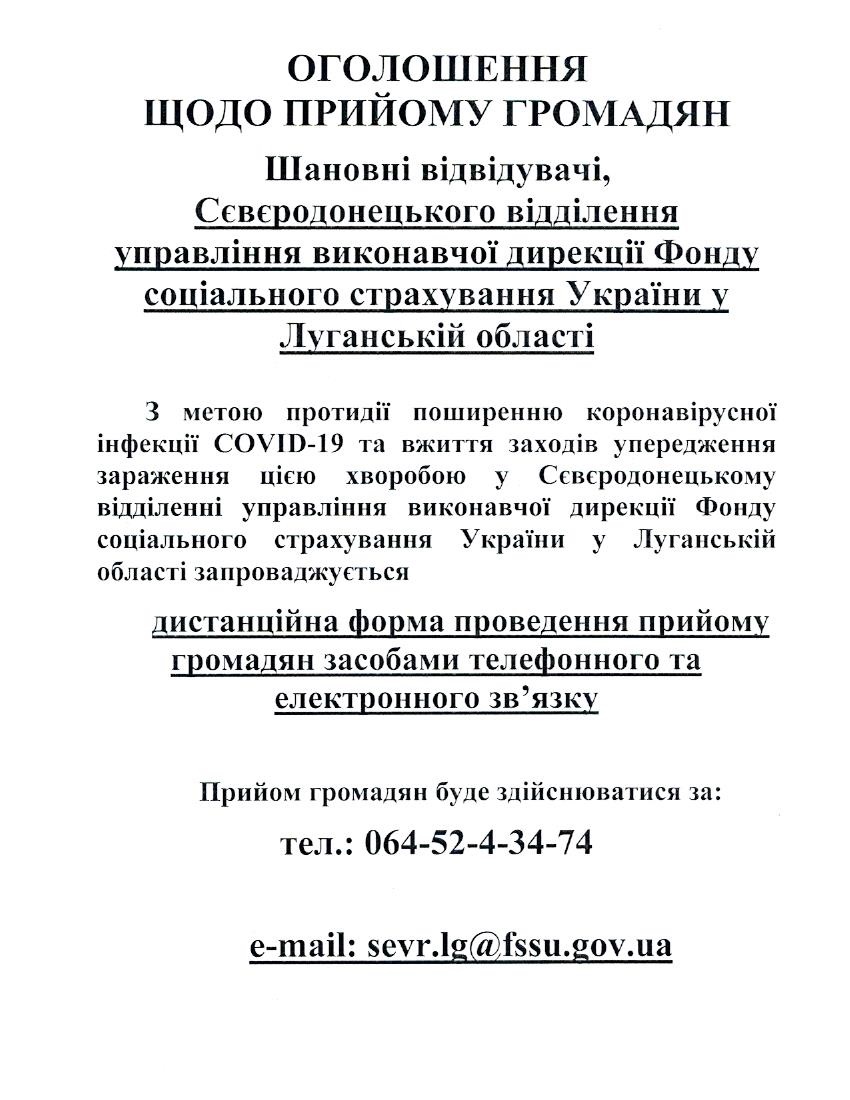 ОГОЛОШЕННЯ ЩОДО ПРИЙОМУ ГРОМАДЯН